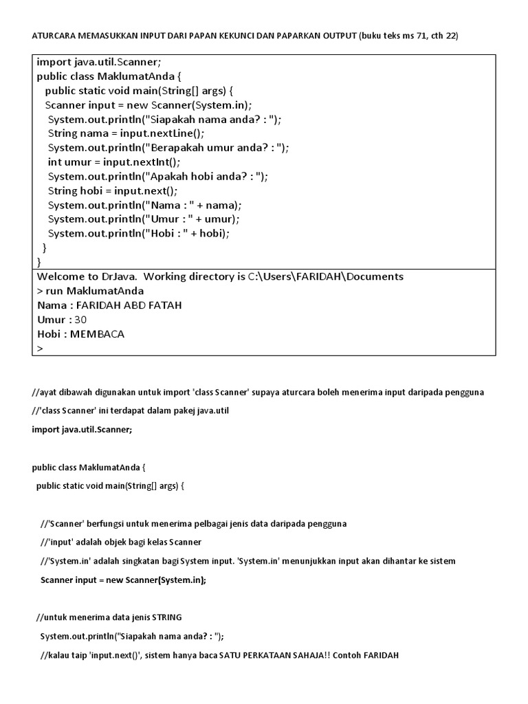 Sains Komputer Asas Sains Komputer Sk T4 Aturcara Java Memasukkan Input Data Pengguna Dan Papar Output