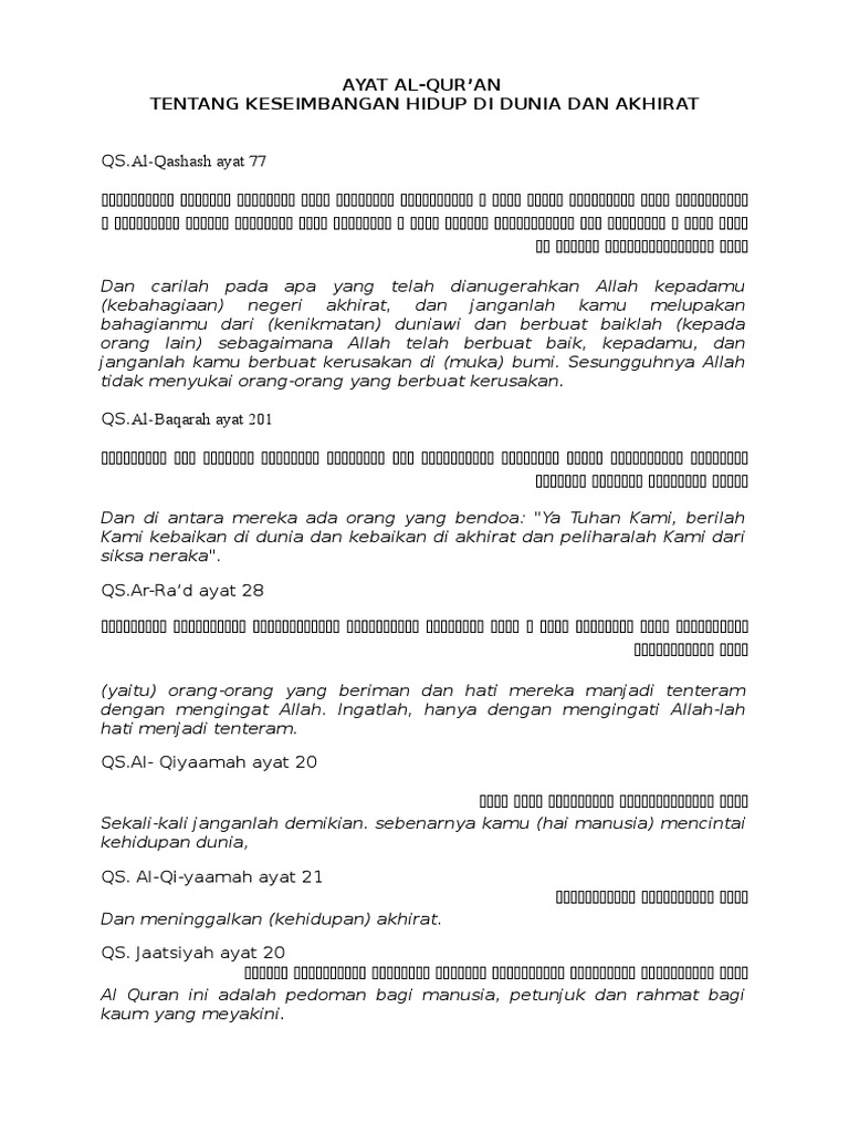 Ayat Alqur An Tentang Keseimbangan Dunia Dan Akhirat