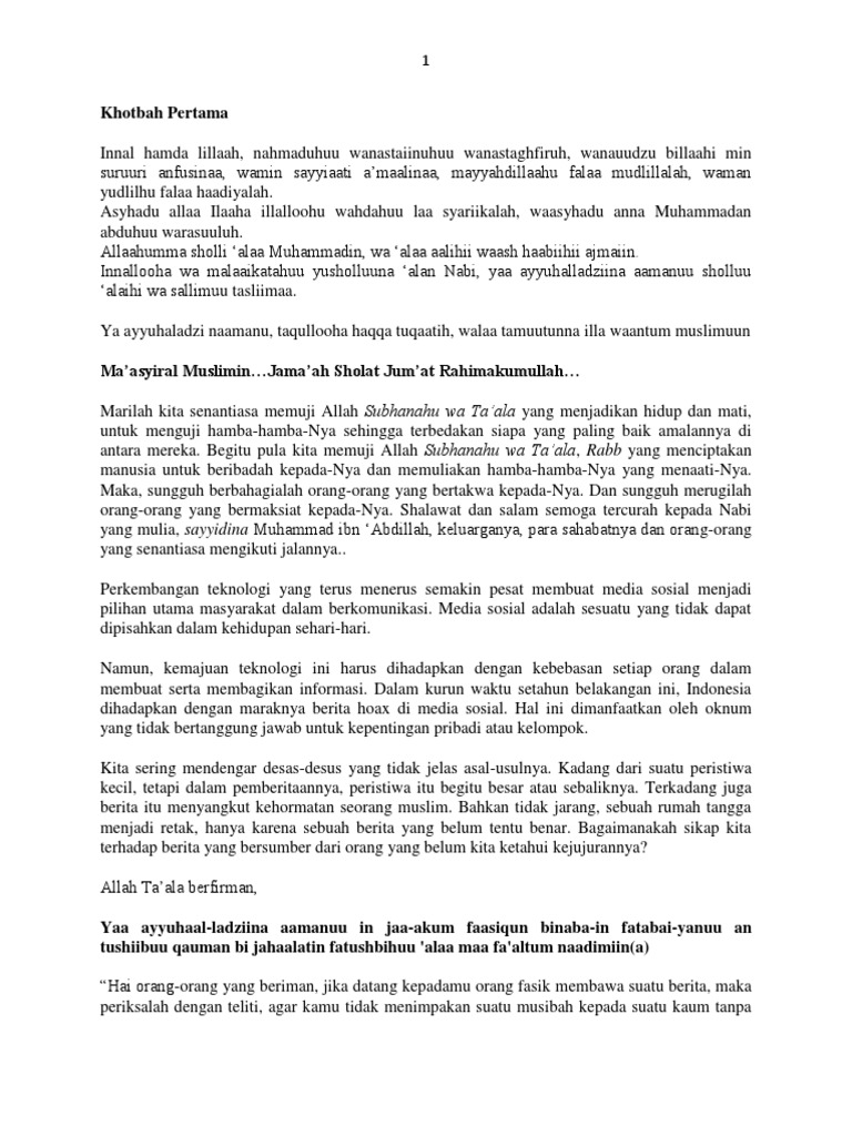 Khotbah Jumat Ujaran Kebencian