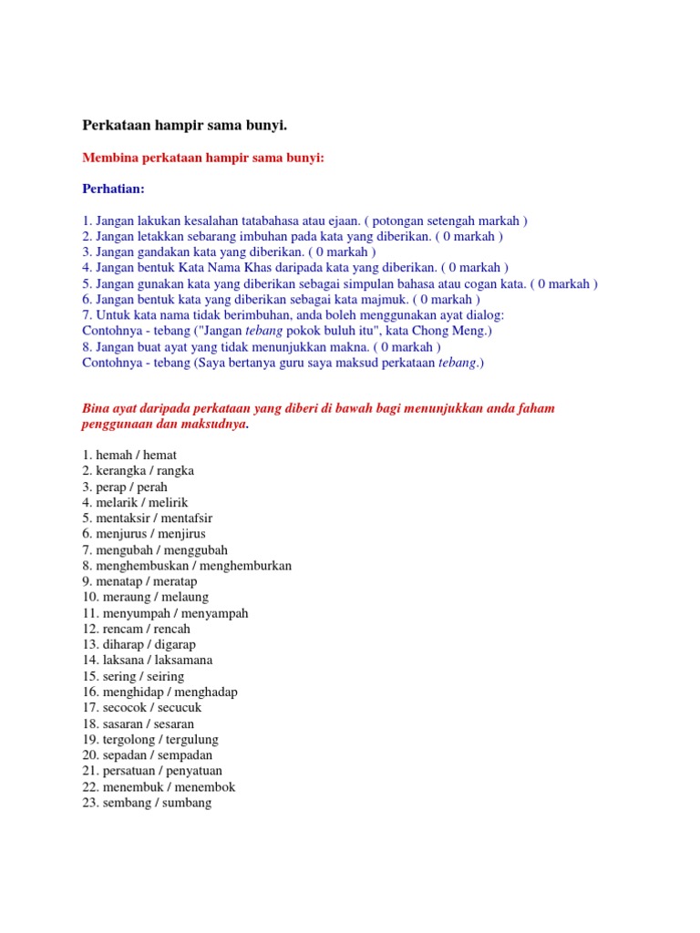 Contoh ayat bagi perkataan hampir sama bunyi Jawapan. Contoh ayat kata ganda. Frasa deskriptif Yang Menggunakan Bahasa Deria Untuk Mengubah Ayat Pemberitahuan Kepada Ayat Pertunjukan.