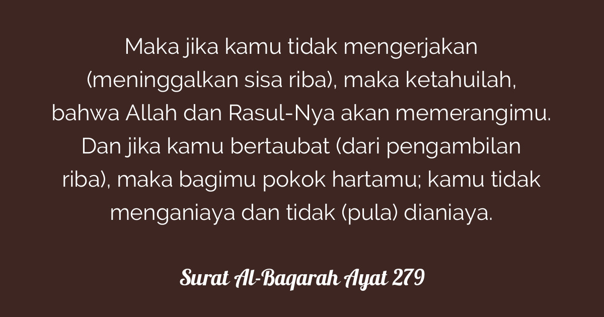 Ayat ini diturunkan di medinah dan merupakan pelajaran yang dikisahkan Allah kepada kita tentang perbuatan kaum yahudi. 12112017 Ayat-ayat al-Quran tentang larangan riba banyak dikaji dalam ilmu fiqih muamalah. Maka jika kalian tidak meninggalkan maka umumkanlah perang kepada Allah dan Rasul-Nya.